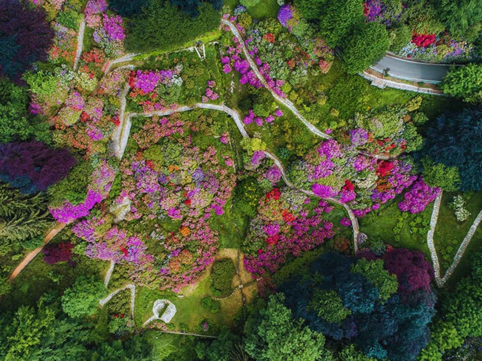 Qui la trasformazione si fa paesaggio: il pendio montano è stato modellato negli anni ’50 dal paesaggista Pietro Porcinai, che ha saputo “scolpire” la natura con la sensibilità di un artigiano del verde. Durante la fioritura di fine maggio, rododendri e azalee dipingono la montagna con una tavolozza vivissima di rosa e cremisi, creando un’atmosfera che sembra uscita da un acquerello.