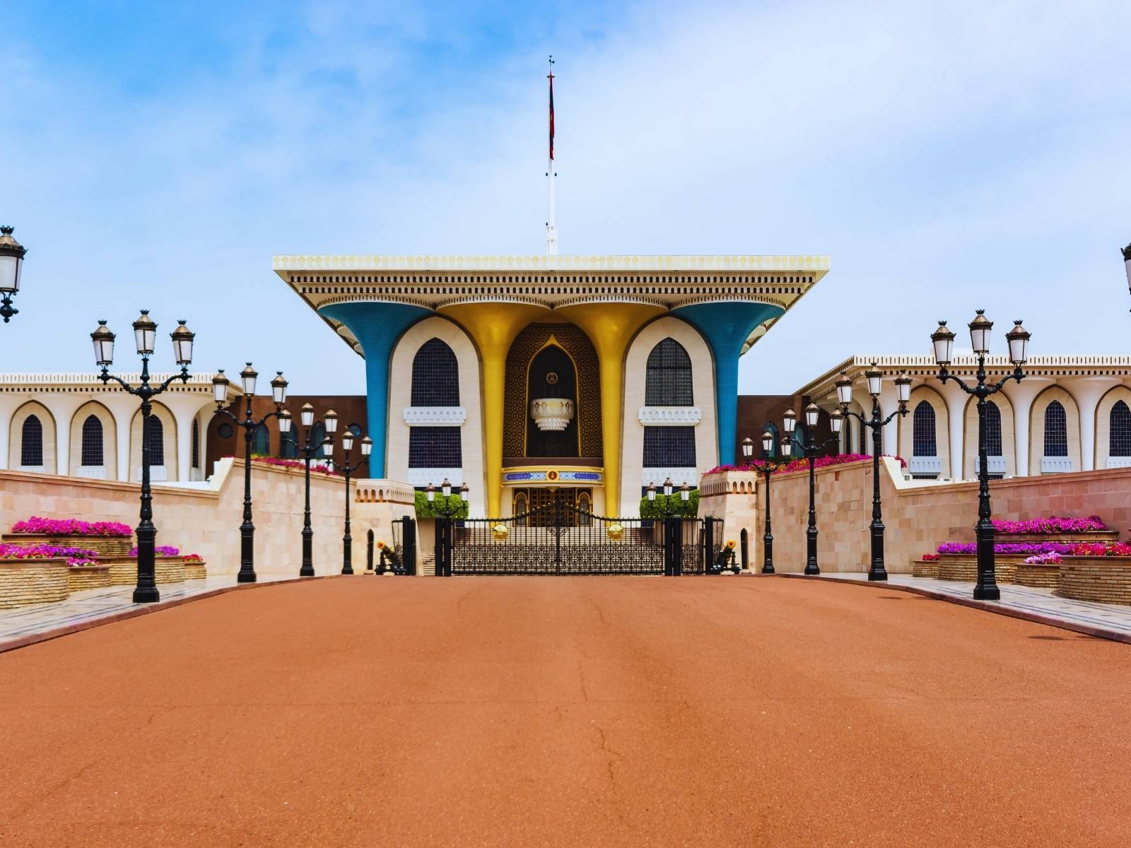 Muscat è una capitale dall’eleganza sobria, quasi contemplativa: il mare che ne lambisce la città, le facciate immacolate, i forti che sorvegliano il porto. La Grande Moschea del Sultano Qaboos vi accoglie con architetture eteree, tappeti monumentali e un silenzio solenne che introduce alla dimensione sacra del Paese. Poco distante, il Souk Muttrah conserva l’anima mercantile della città: corridoi intrisi di incenso, spezie color ambra, tessuti lavorati a mano e vetrine ornate di pugnali khanjar, simbolo identitario dell’Oman. A completare il quadro, il raffinato Museo Bait Al Zubair custodisce abiti, armi e oggetti di vita quotidiana che narrano la storia del Paese, mentre il Palazzo Al Alam, con la sua facciata blu e oro, emerge come un emblema dinastico nel quartiere governativo. Un ultimo sguardo su un Oman più moderno e vitale: un tassello che sigilla un viaggio dalla bellezza multiforme.