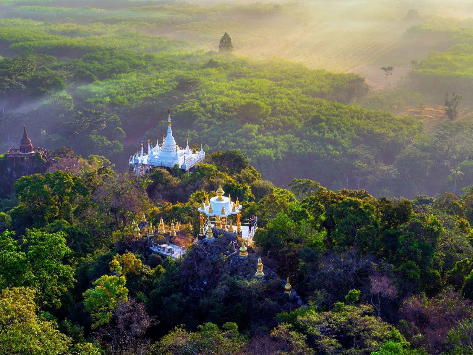 Scendendo lungo la costa del Golfo si raggiunge il Parco Nazionale Sam Roi Yot, paesaggio carsico di falesie calcaree, lagune e rilievi modellati dal tempo. La tappa più significativa è la grotta di Phraya Nakhon, dove un padiglione reale del XIX secolo appare illuminato da un fascio di luce che filtra dalla volta, creando uno dei luoghi più iconici del Paese.