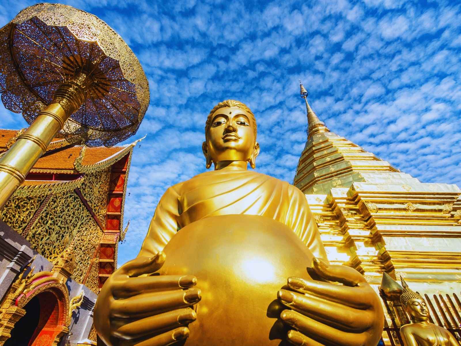 Una delle esperienze più emozionanti del viaggio è la visita etica al Santuario degli Elefanti, dove è possibile avvicinarsi a questi maestosi pachidermi con rispetto, partecipando a momenti di cura, bagni nel fango e ascoltando storie dedicate alla loro tutela. L’itinerario conduce, infine, a Wat Phra That Doi Suthep, il tempio che veglia su Chiang Mai dall’alto, raggiungibile percorrendo una scalinata di 309 gradini su cui torreggiano imponenti statue. La sua pagoda dorata cattura la luce come un faro silenzioso, mentre dalla terrazza lo sguardo si posa sulla distesa di vegetazione e sulla città che si apre ai piedi della vallata.