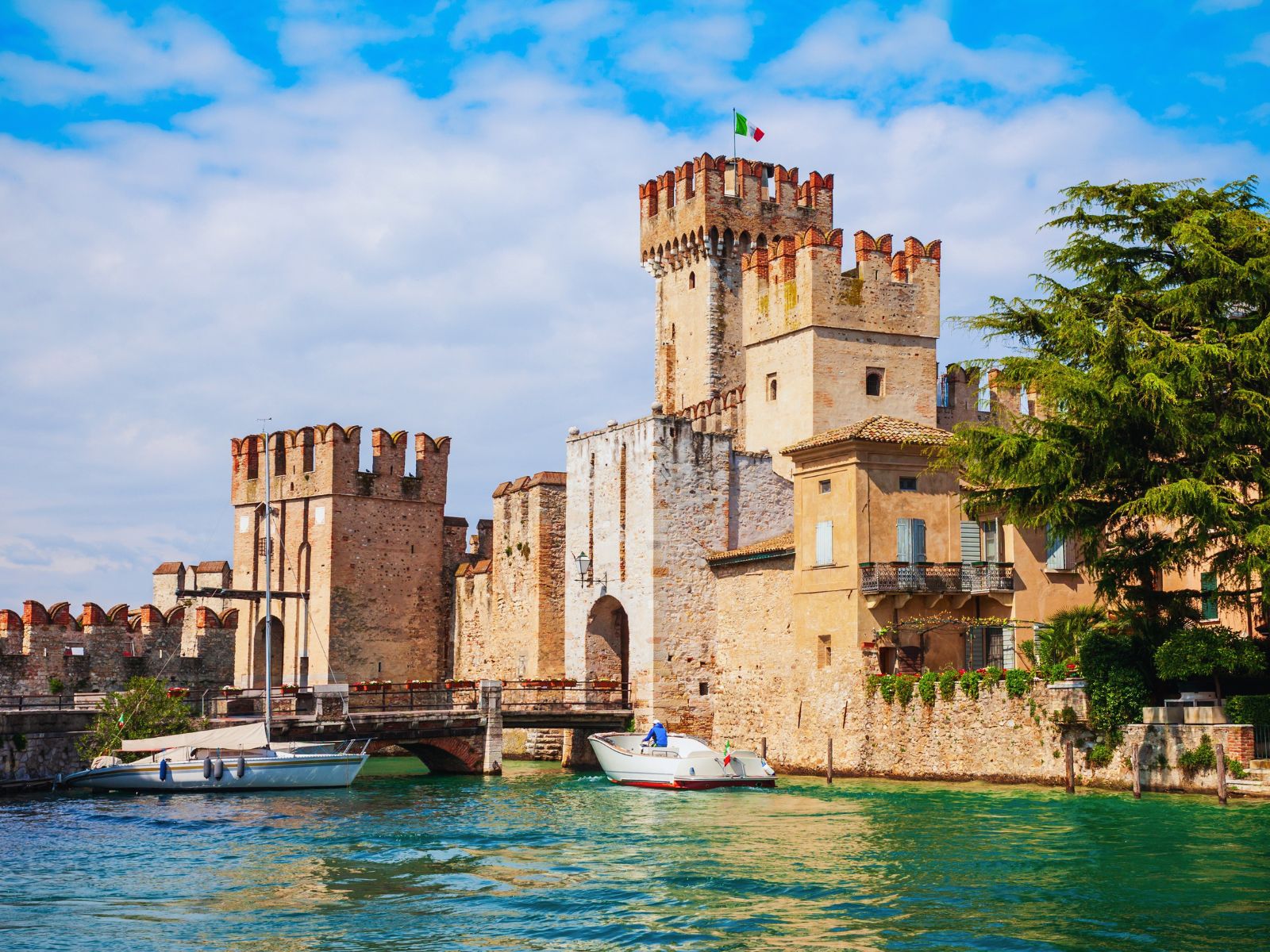 Catullo la descrive come «gioiello delle penisole e delle isole» e per Carducci è «la verde Sirmio… fiore che sorride nel lucido lago». Il centro storico della nota località termale è infatti scenograficamente proteso sul Lago di Garda, «Benaco che si gonfia con flutti e impeto di mare» secondo Virgilio, sul quale si allunga il lembo peninsulare, connesso alla terraferma dal ponte levatoio del Castello Scaligero merlato trecentesco. Oltre le storiche mura ci s’immerge nel fascino dell’antico e caratteristico borgo, ricco di meraviglie artistiche d’inestimabile valore culturale, fra pregiati edifici sacri, monumenti, testimonianze altomedievali, palazzi, terme, giardini e scorci panoramici di straordinaria bellezza. Sulla centralissima piazza Carducci prospetta il settecentesco Palazzo Callas, ricordo della famosa soprano che in un’elegante villa fra il verde nel cuore della penisola visse la serena e felice parentesi di una vita tormentata.